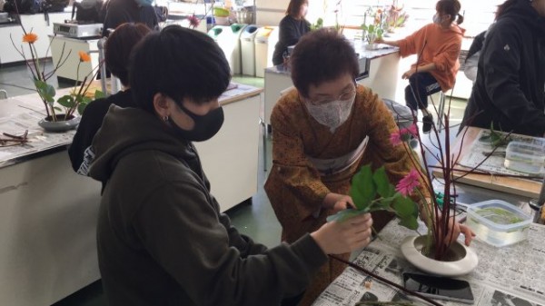 全くお花の心得がなくても、一人ひとりに寄り添い、丁寧に指導してくださるので、学生は安心して学んでいます。