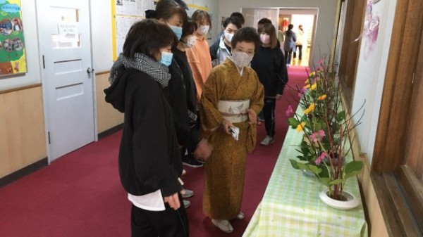 担当くださるのは、お花の道で60年、華道 未生流の佐藤瑠美子先生です。瑠美子先生が授業を持ってくださって今年で10年目となりました。長きに渡り、学生指導に尽力くださるとともに、入学式では毎年式花をご寄贈くださり、私たちはあたたかい愛情こもるお花を1ヶ月近く愛でる機会をいただいています。
