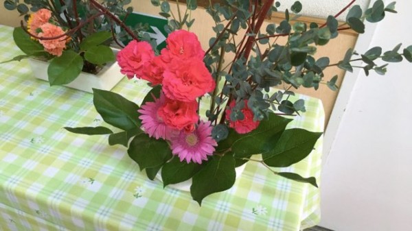 素敵に生けたお花の前で和やかな雰囲気でした。