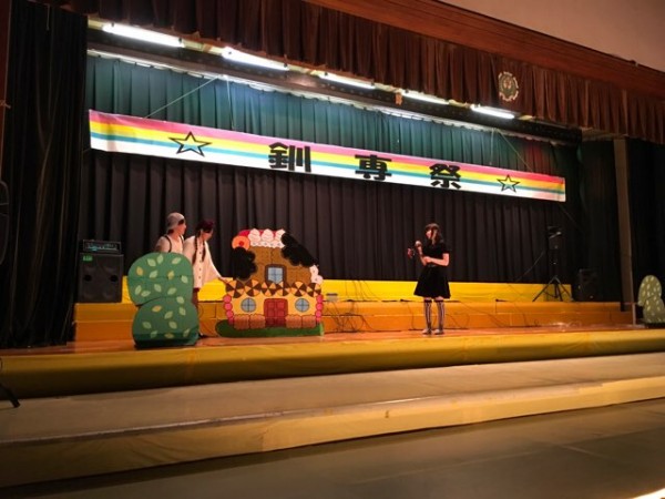 保育の技術がキラリ光った介護専攻科の学校祭での劇発表。高校時代演劇部だった森川さんは魔女っ子リカちゃんの役で大活躍❣️(写真右)