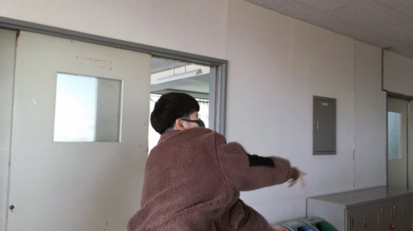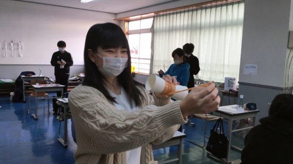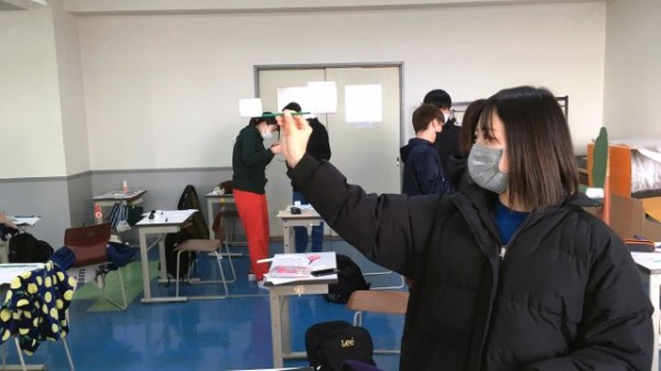 教室では手狭となり、廊下に出て飛行機を飛ばす学生も!