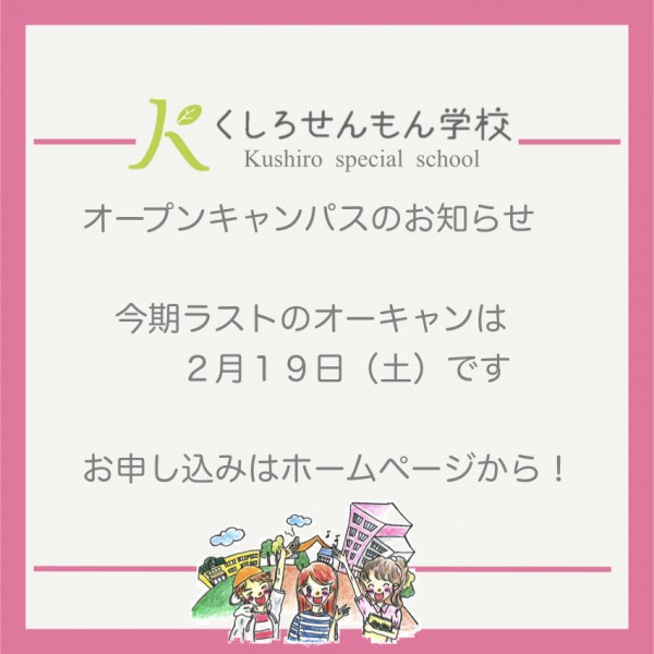 もちろん、くしろせんもん学校のオーキャンはミニ体験つきです。今回も先輩方がためになって楽しく学べる体験を準備してくれています。