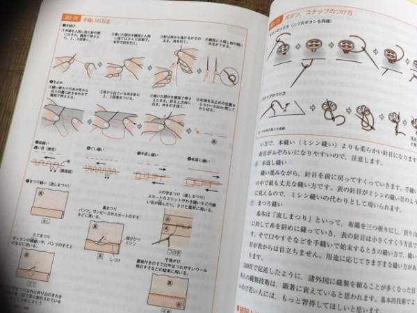 教科書には並縫い、まつり縫いの方法が丁寧に書かれていました。
