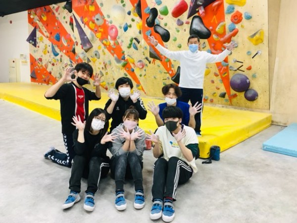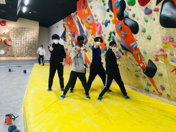 ハイポーズ!学生はみんな笑顔!ボルダリングは大きな達成感を味わえる素敵なスポーツです!