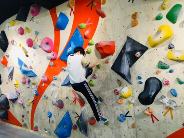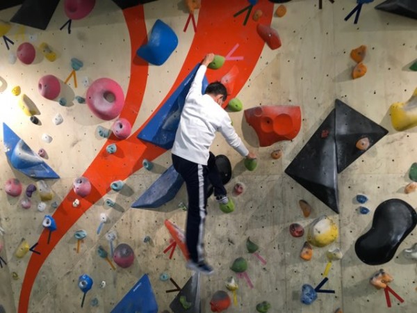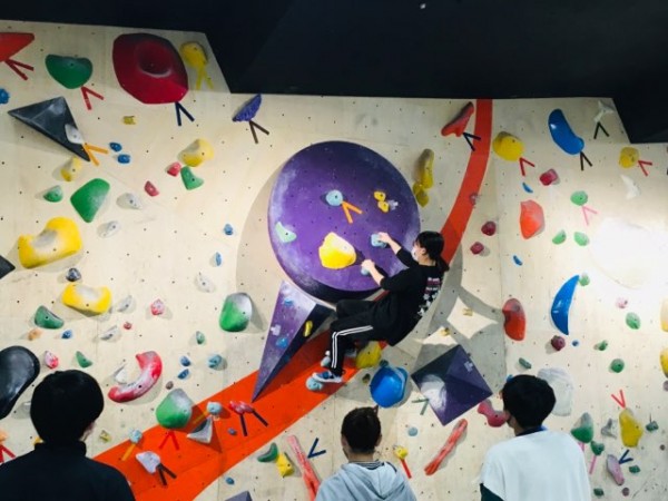 若い順の数字が書かれているホールドからチャレンジしていきます。仲間たちに見守られ頑張っていました。