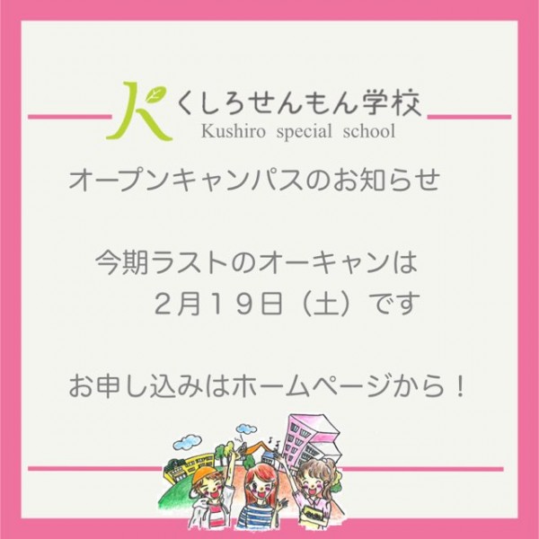 2月19日(土)に、今期最後のオープンキャンパスを開催します。