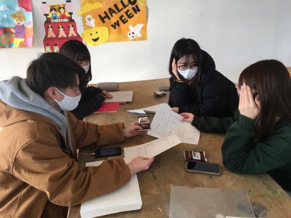 ボランティア学生のミーティングを開催しました。学年が違うため、どんな演目にするかを悩むこども環境科の学生さんたち。