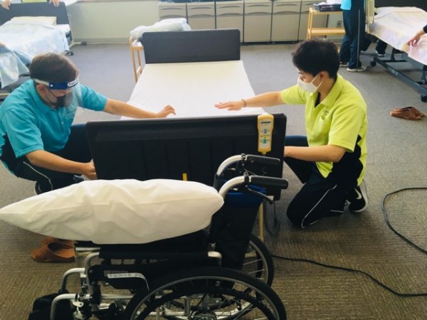 介護環境科では、介護技術のデモンストレーション披露と、車いす介助体験と移動・移乗体験に確定しました。