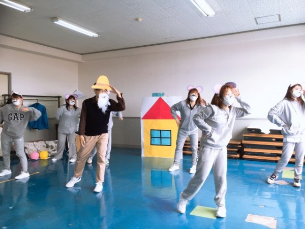 1年次の早期にグループで創作遊戯に取り組みました。グループワークを通して仲間たちとの絆も深まりました。