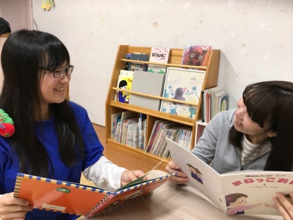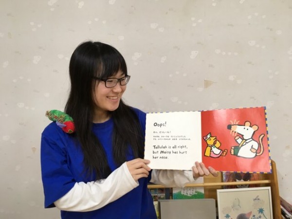 友人と絵本の読み聞かせの練習です。「メルーラは心臓の音を聞きます。ドクン ドクン」