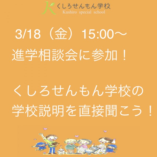 くしろせんもん学校は、3/18(金)15:00〜釧路市観光国際交流センターで行われる進学相談会に参加します。
