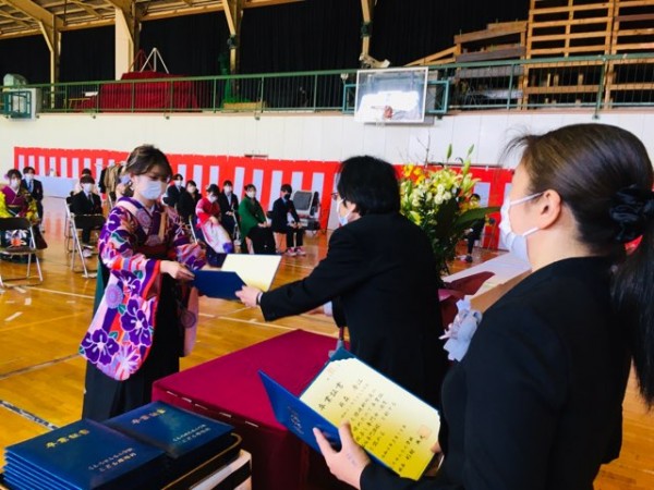 校長先生から一人ひとり手渡しされる卒業証書は、2年間頑張った証です。