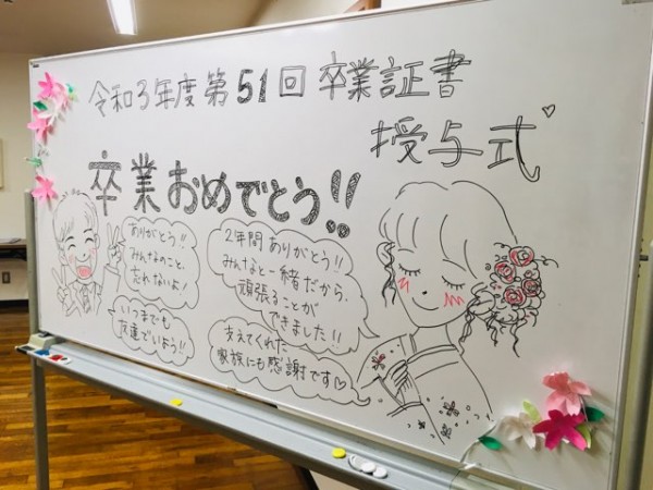 令和3年度卒業生が学んだ2年間は、コロナ禍における2年間でした。度重なる緊急事態宣言や実習延期、リモート授業など、さまざまな困難を乗り越え、この日の卒業という晴れの日を迎えることができ、言葉では現しきれない喜びと感動だったと推察します。