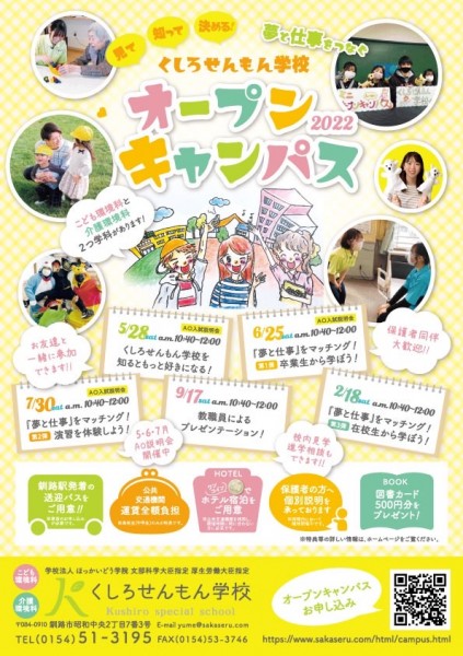 春です。見て、知って、決める! くしろせんもん学校のオープンキャンパスで皆さんをお待ちしています!