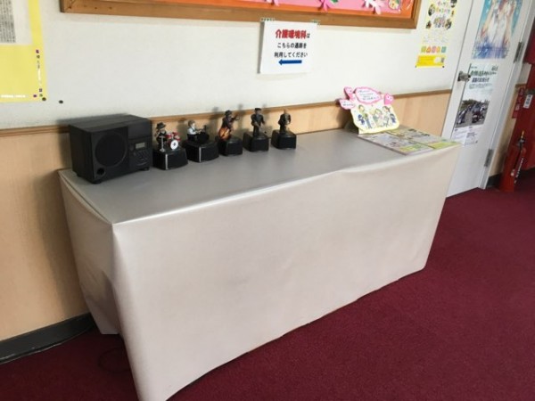 ウェルカムボードの下のテーブルにも、新しいテーブルクロスがかかりました。