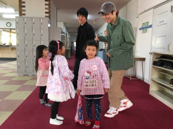 こども環境科1年生の宮内さん。「懐かしい!」と一言。ケン先生に遊んでもらい、園児さんは満面の笑顔ですね。