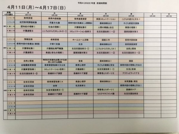 時間割をお知らせします。