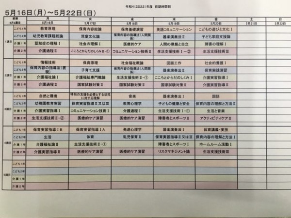 時間割をお知らせします。