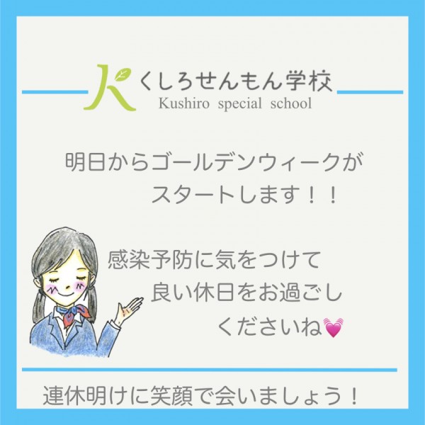 このお休みでしっかり身体を休めてリフレッシュしてくださいね。
