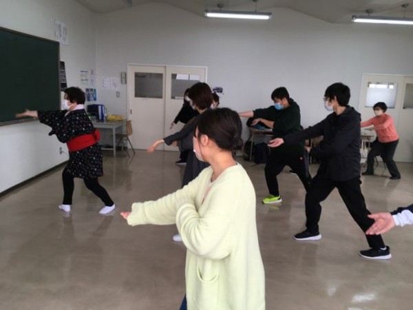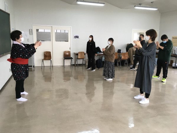 この日の授業は、民舞の古川昌代先生をゲスト講師としてお招きし、歌や踊りが好きな方へのアクティビティの展開として『ソーラン節』や『北海盆唄』を教わりました。