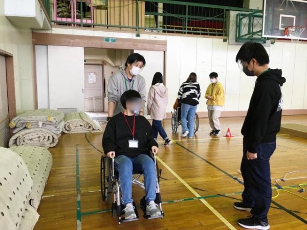 車いす体験ブースでは、実際に車椅子に乗ったり、押したりしてみました。アンケートでは「車いすの利用者さんの気持ちが分かり、介助に大切なことが分かりました」「乗っている人に恐怖心を与えないようにするのが大変そうだと思いました」などの貴重な意見をいただきました。
