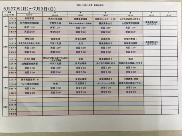 時間割をお知らせします。