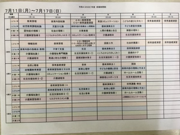 掲載後の時間割に変更が生じる場合があります。変更はお知らせできないことを予めご了承ください。