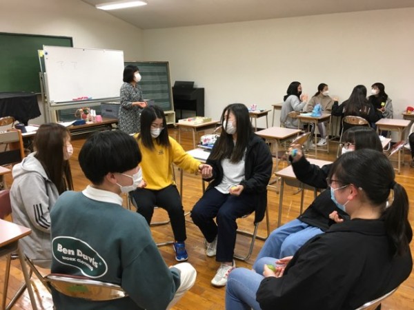 こども環境科2年生は、保育の内容・方法に関する科目の一つとして、保育内容の理解と方法Iを受講しています。本科目は、音楽の楽しさを実感しながら、保育現場で活用できるさまざまな音楽的技術を習得してゆきます。