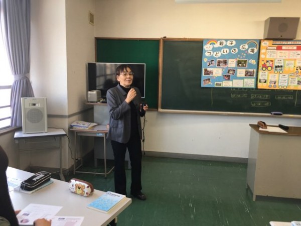 今日は地域子育て支援における相談支援という内容で、ゲスト講師に釧路市東部子育て支援拠点センター 子育て支援室長の岡本 栄子先生をお招きしてお話を聴きました。