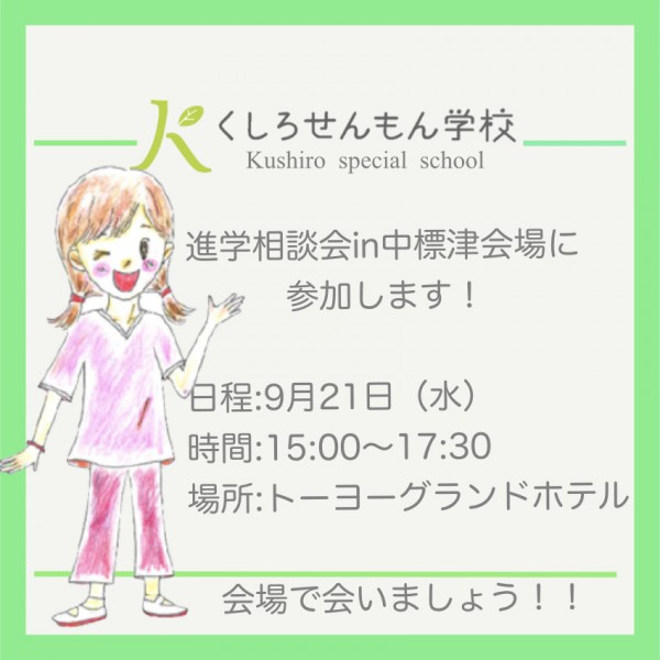 9月21日(水)に中標津トーヨーグランドホテルで開催される進学相談会への参加が確定しました。