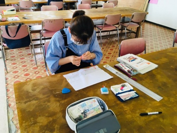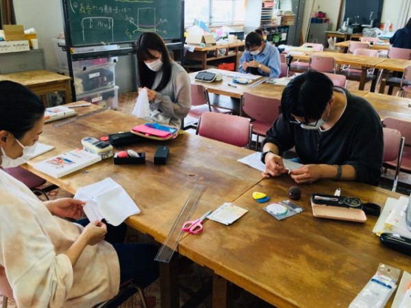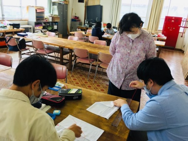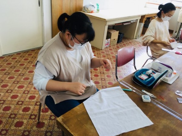 この日と翌週の授業では、まつり縫いとボタンつけの演習を行いました。