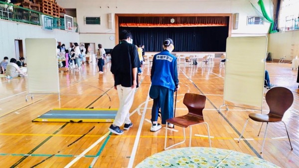 擬似体験と車いすを体験しました。錘を腕や足につけたり、視界が曇るサングラスをかけて、高齢者や障がい者の大変さや困難さを擬似体験しました。