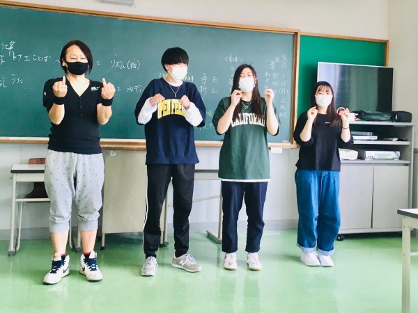 わらべうたの基礎的な技術を習得しながら、乳幼児の遊びうたとしての意図や意義を理解し、自分なりの表現方法を模索する学生たちです。