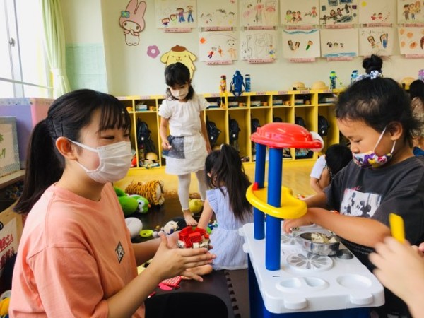 愛国フレンドようちえんには、2週目の後半でお邪魔しました。一緒に遊んでいると「さやか先生優しいから好き💛」との声が聞こえてきました!