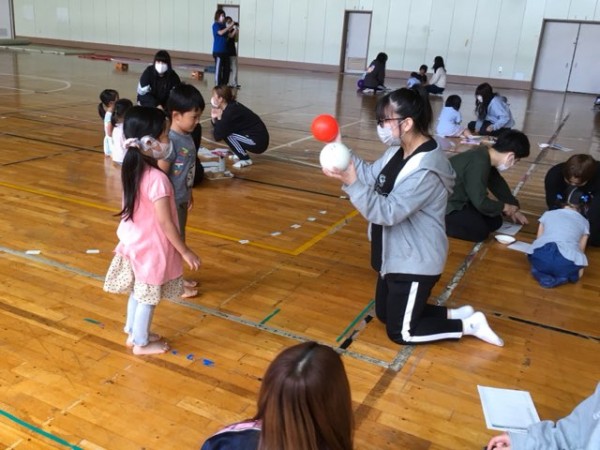 「こんなことできるかな?」上手に声かけを行い、園児さんと関わる姿に頼もしさを感じました。さすが、保育士のたまごですね(#^.^#)
