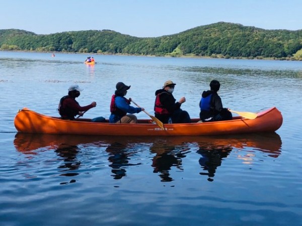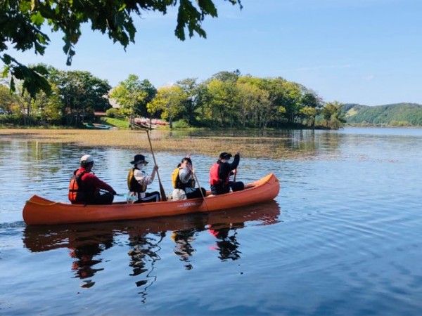 塘路湖へと漕ぎ出しました。カヌーから見る大自然の景色は格別でしたね!