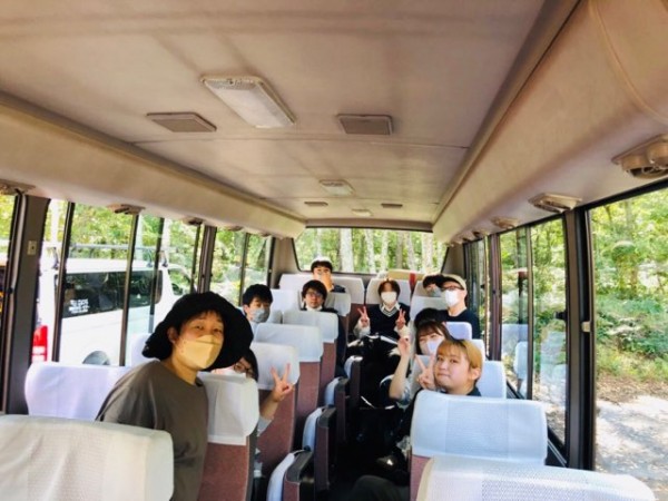 介護環境科1年生はわくわくしながら、学校バスに乗り込みました。