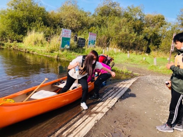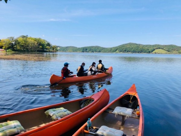 この日の授業では、釧路川を下るカヌー体験を行いました。ツアーガイドから、釧路湿原の成り立ち、生息する動植物についての知識を学習しながら、塘路湖から細岡までの大自然を満喫した1時間半のカヌーの旅を満喫しました。