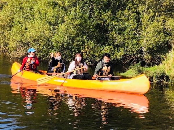 数名ずつの学生とツアーガイドでカヌーボートに乗り込み、出発です!