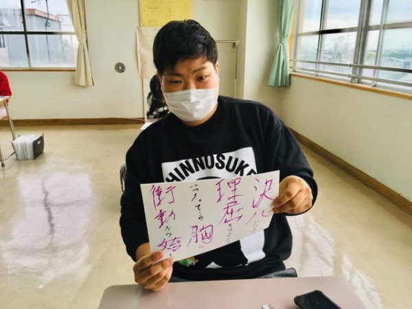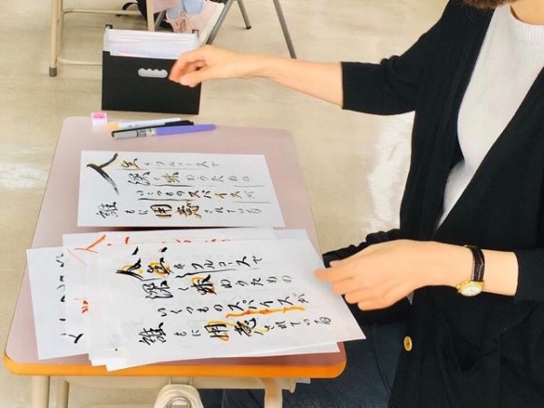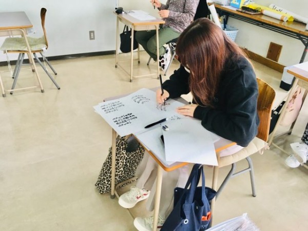 文字の上手下手に限らずに、楽しみながら気軽に書道の作品作りができることを学んだ介護環境科2年生。授業の中で、文字のバランスや読みやすい文字の書き方も習ったので、これから先の人生においても大いに役立つことでしょう。