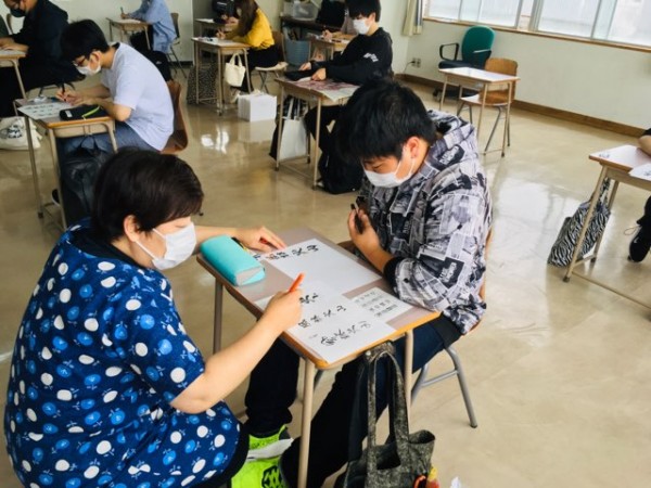 先生が事前に準備した書体を書く練習です。皆さん、集中して取り組んでいました。