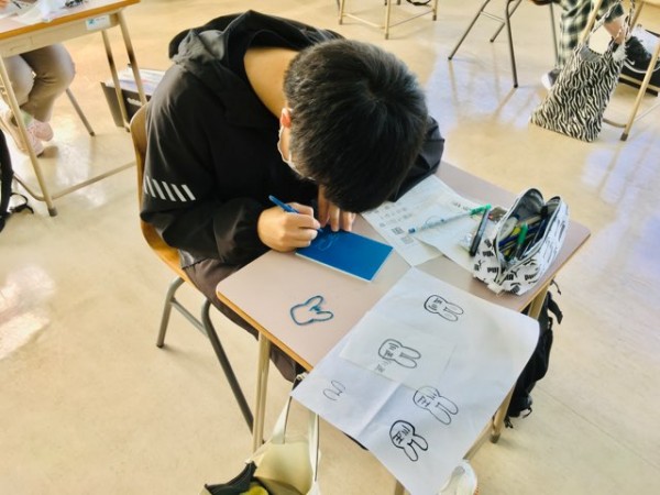 初回は名前や日常で使う文字を書き、自分の書き癖を自覚し、バランスの良い統一感のある文字を書くコツを学習しました。2・3講では消しゴムハンコを作成しました。さまざまな書体の中から自分が表現したい書体を決めて、練習しました。デザインを含むハンコの文字決めを行い、消しゴムを掘り進めて、世界に一つだけのオリジナルハンコを完成させました。