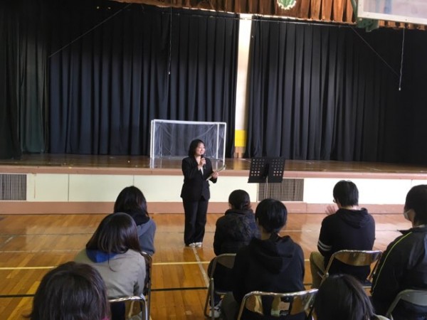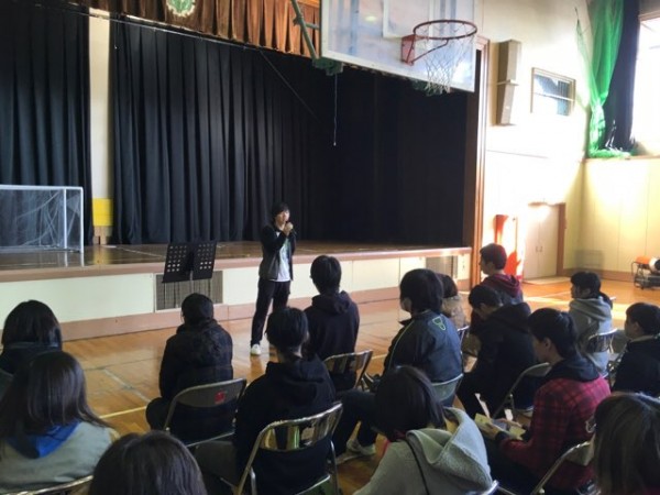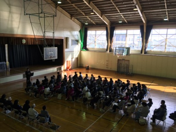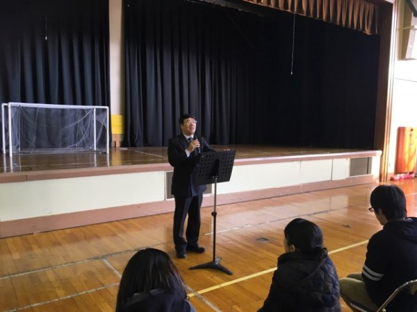 明日から冬期休暇に入るため、5クラスの全学生参加による全体集会を行いました。