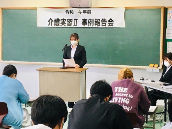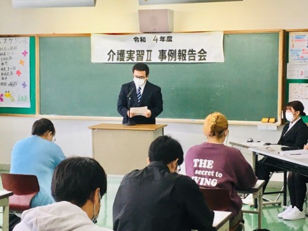 介護環境科2年生が6月6日〜7月8日に行った5週間の実習では、介護過程の一連の流れを理解した事例研究を実施しました。一人の利用者の方にスポットを当て、アセスメント後に立てた介護計画を実施、評価を行い報告集としてまとめ、発表しました。