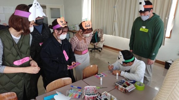 Cチームは『ハロウィンのお面作り』を実践しました。幼少期に戻り、楽しむ高齢者の姿が目に浮かぶ様でしたね。終了時まで、お気に入りのお面をつけたままの姿が印象的でした。まるでハロウィンパーティーのような楽しい空気が教室を満たしていました🎃🎃