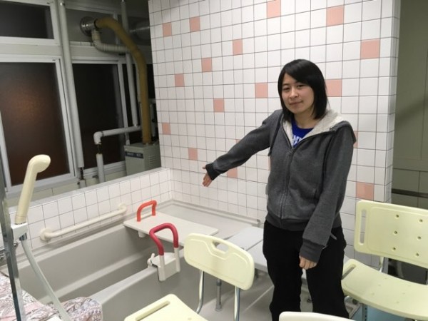 入浴実習室です。実際にお湯を使い、入浴介助の実践授業を受けました。