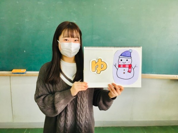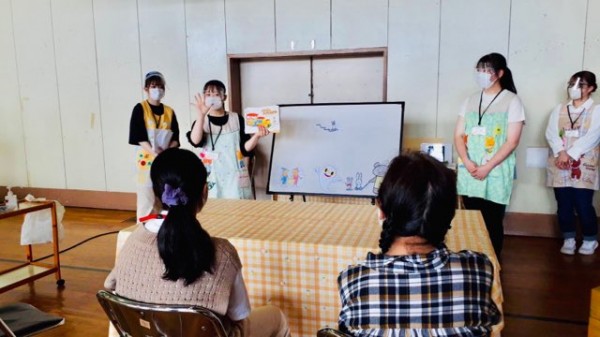 1年生の保育実習前には、紙芝居の読み聞かせの授業がありました。徐々に実践力を身につけていきました。