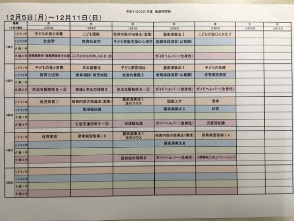掲載後の時間割に変更が生じる場合があります。変更はお知らせできないことを予めご了承ください。