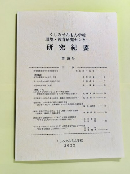 くしろせんもん学校 環境・教育研究センターより、研究紀要の第10号が発刊されました。本紀要には専任講師5名、非常勤講師3名の研究論文3編、研究ノート6編が掲載されています。