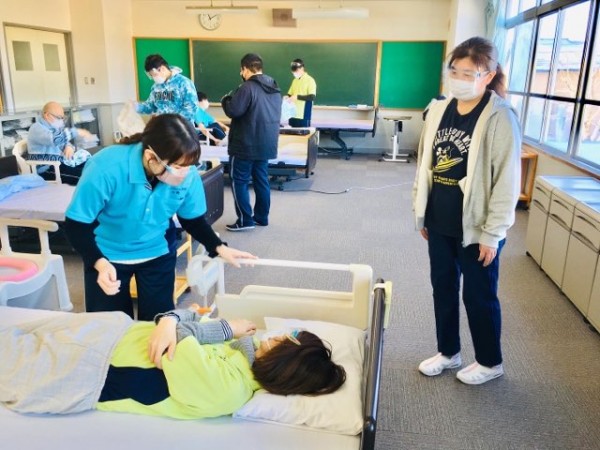 実践を繰り返し行うことで、支援技術を習得していく学生たち。4月からは、現場で即戦力として働ける人材育成に努めています。
